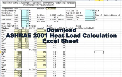Online PDF Spreadsheet For Cooling Load Calculation Excel Doc
